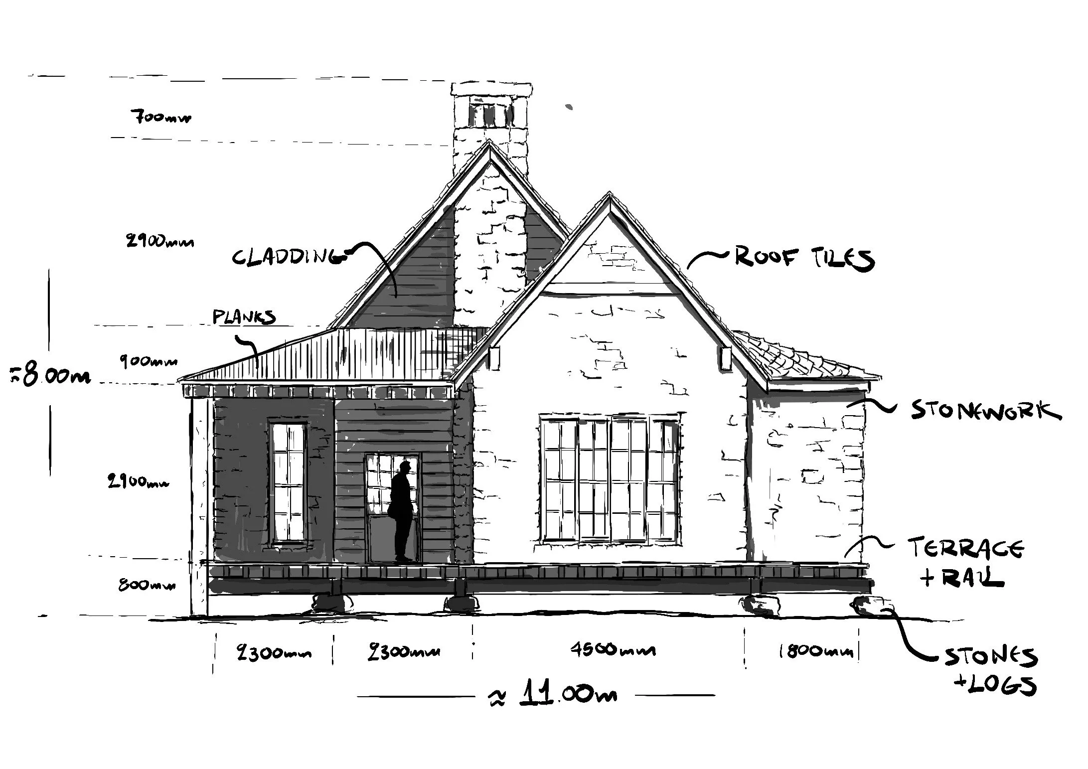 EXT. Concept drafts for the final mountain house
