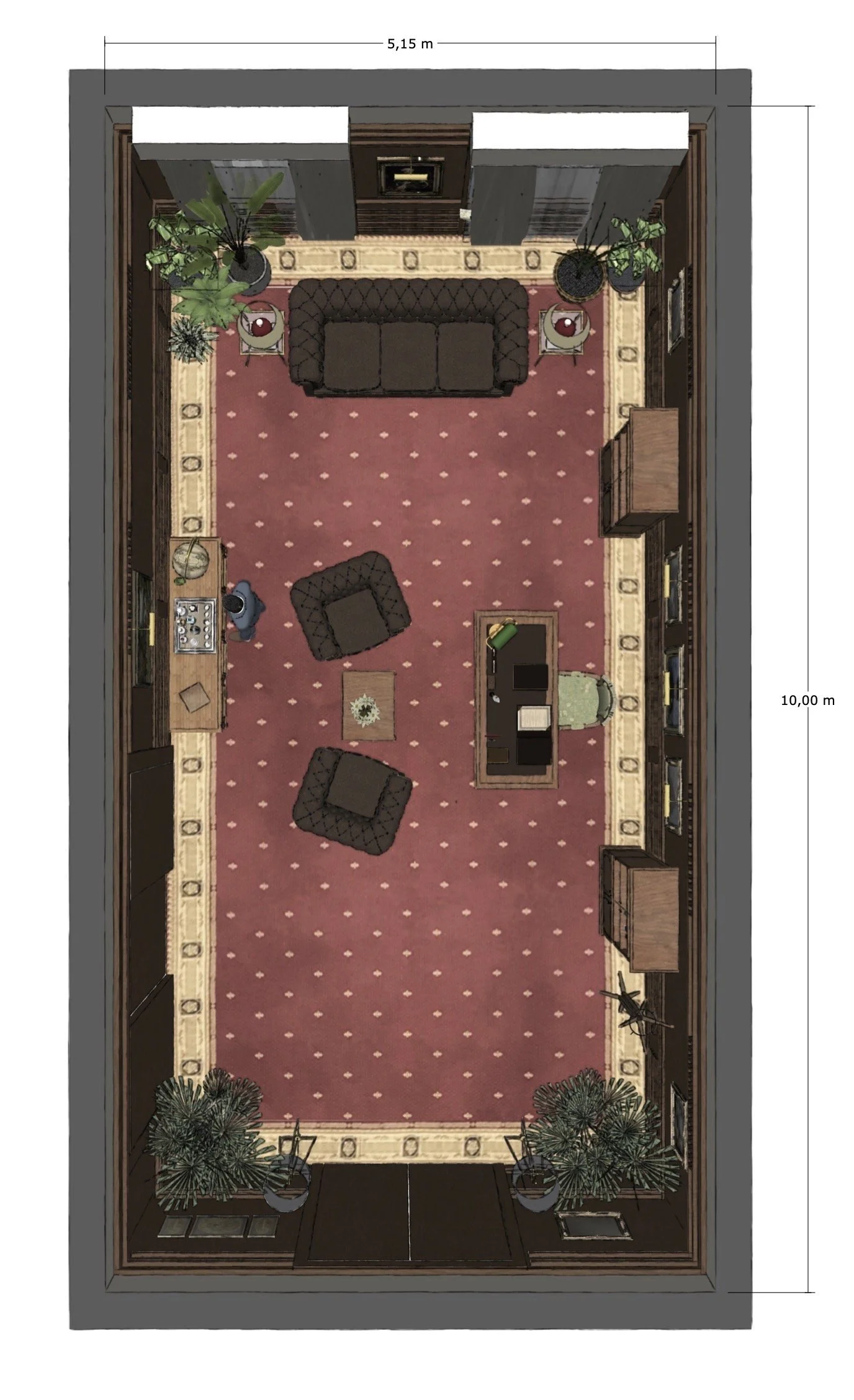 Lake house interior ground floor. This was build with the exterior as shown at the machetes. It took the whole sound stage, a bit less than 50m X 30m. In a different soundstage we had the first floor and separately the basement
